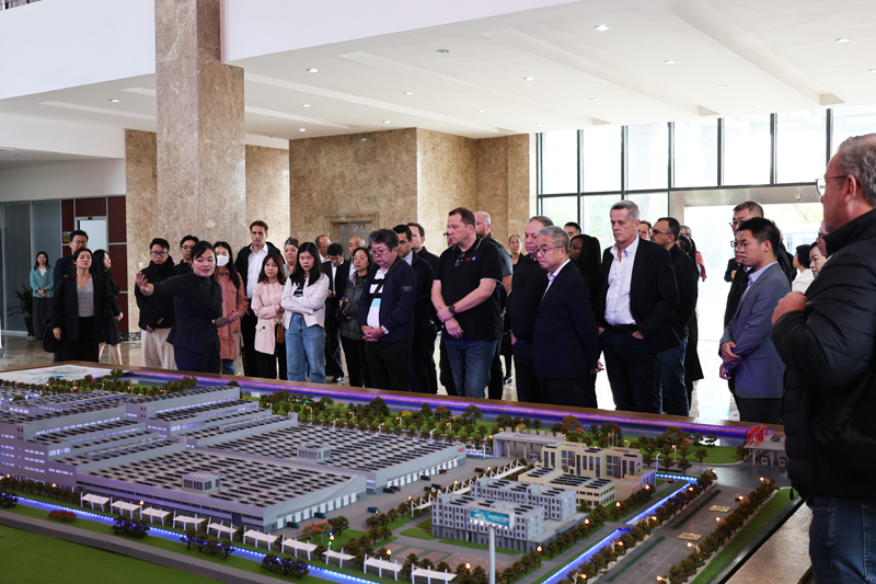 活动伊始,到访嘉宾共同走访参观了海利循环产业园,实地观摩瓶砖回收、加工清洗、造粒纺丝工序流程。看到满仓的塑料瓶砖整齐码放、废塑料清洗严格彻底、自动化分拣设备运转高效、工厂各项管理要求规范到位,嘉宾们赞赏不已,表示“中国在rPET领域的规模化、自动化水平远超预期,尤其是前端回收体系的完整性与加工环节的标准化,为全球PET循环经济提供了可借鉴的‘中国方案'”。